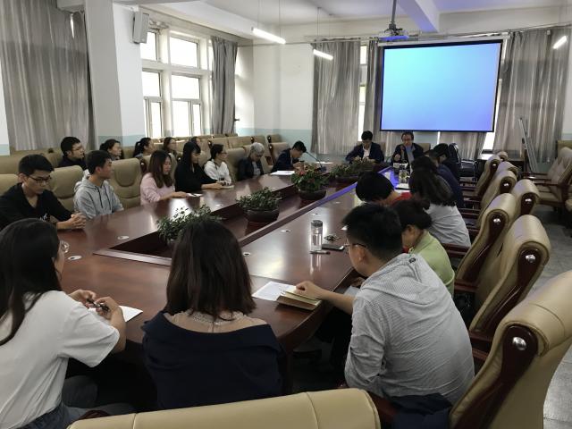 师生见面会上,赵建国院长发表了重要讲话,首先他代表全院教职工对首届研究生的到来表达了衷心的祝贺和热烈的欢迎,接着他介绍了学院的发展历史,师资队伍,科研成果,学科建设等基本情况,并对2019级研究生提出了具体的要求及个人发展的期望。随后,刘文书记发表了重要讲话,他教育新生应该树立正确的世界观、价值观和人生观,树立正确的入党动机,端正思想,利用宝贵的三年研究生生活发展自己,成长为有利于社会主义社会建设的优秀青年。最后辅导员和2019级全体同学逐一进行了自我介绍并期望在接下来的学习生活中共同努力,将本学科建设的更加美好。