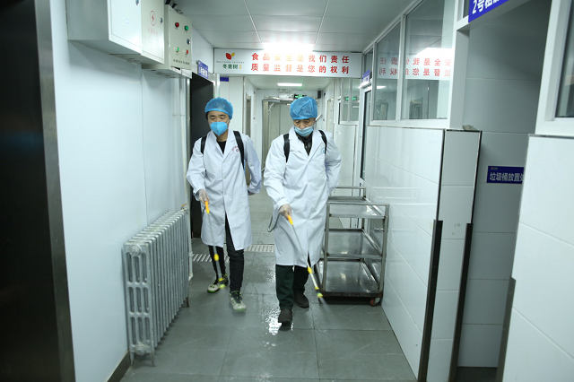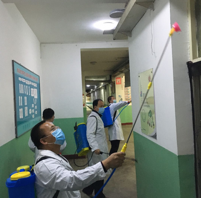 工作人员在对校园各场所进行集中消毒