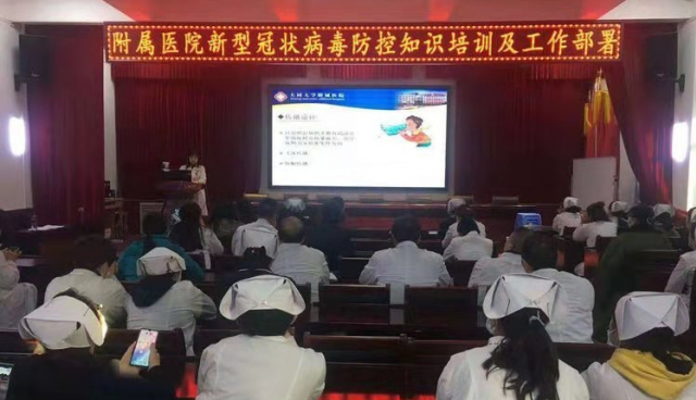 附属医院的医护人员接受疫情防控培训