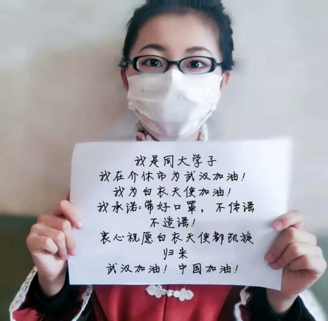 在来势汹汹的疫情面前,同大师生隔空喊出共同的心声:“服从命令,听从指挥,同舟共济,众志成城!”,并用各自的方式为武汉加油、为中国加油。