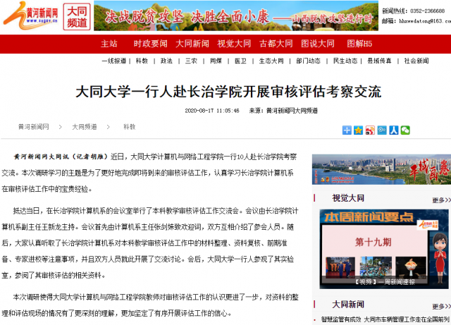 黄河新闻网大同讯(记者胡雁)近日,大同大学计算机与网络工程学院一行10人赴长治学院考察交流。本次调研学习的主题是为了更好地完成即将到来的审核评估工作,认真学习长治学院计算机系在审核评估工作中的宝贵经验。