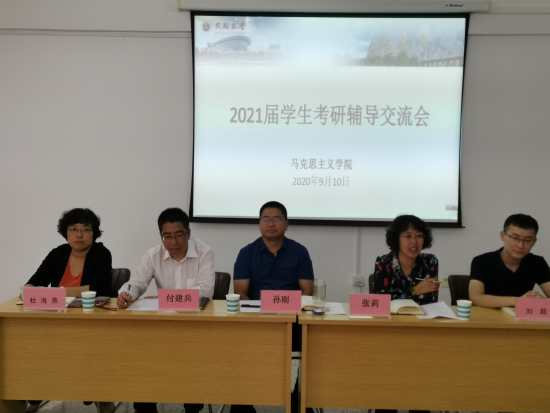 为进一步加强同学们对研究生入学考试的认识,了解前沿的就业形势、增强考研斗志。9月10日下午,马克思主义学院在学院会议室,为2021届学生举办考研辅导交流会。学院党委书记孙刚、院长张莉、院党委副书记付建兵、院团委书记侯雁伶、教科研办主任杜海燕、刘超和17级学生参加了本次交流会,院党委副书记付建兵主持会议。