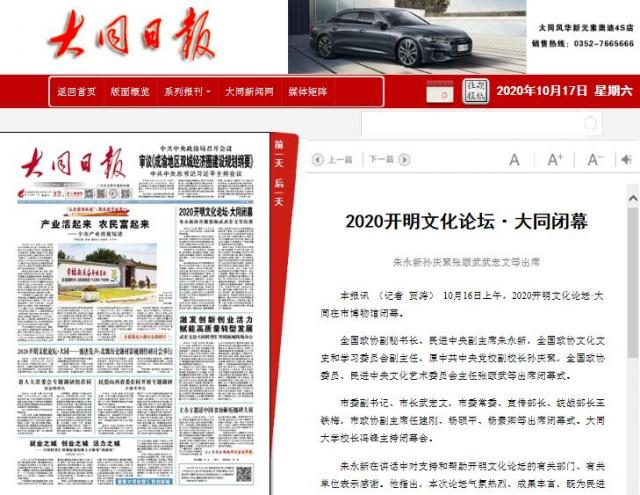 本报讯(记者贾涛)10月16日上午,2020开明文化论坛·大同在市博物馆闭幕。