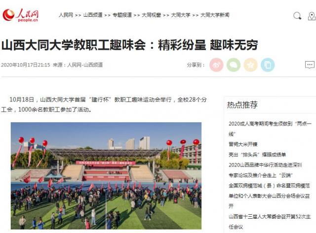 10月18日,山西大同大学首届“建行杯”教职工趣味运动会举行,全校28个分工会,1000余名教职工参加了活动。