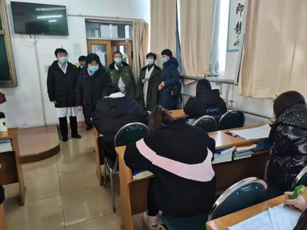 近日寒潮来袭,新冠疫情防控形势严峻,姚丽英一行首先实地察看了医院的住院、门诊科室及学生考场、学生宿舍,对新冠疫情防控工作进行了指导。在学生宿舍,姚丽英亲切地询问了降温后学生的冷暖情况,提出要注意加强学生宿舍保温工作。
