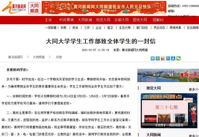 岁月不居,时节如流。经过一个学期充实紧张的学习生活,寒假即将开始,农历新年即将到来。为确保寒假全体学生的身体健康和生命安全,学生工作部特向全体学生作出如下提示: