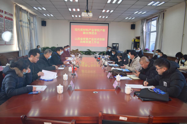 1月8日上午,“现代炭材料产业学院产教融合推进会暨山西省炭素产业技术创新战略联盟工作会”在我校炭材料研究所举行。我国特炭行业领军人,新成新材料股份有限公司张培林董事长、大同市发改委李秉坤副主任、平城区发改局李柱副局长以及我省炭素产业技术创新战略联盟的20多位企业代表齐聚一堂,对我校“现代炭材料产业学院”的产教融合人才培养模式进行讨论和建言。会议由校党委常委、副校长翟大彤主持。科研部部长康淑瑰、化工学院党委书记刘思周等列席会议,来自化工学院和炭材料研究所的师生代表也参加了本次会议。