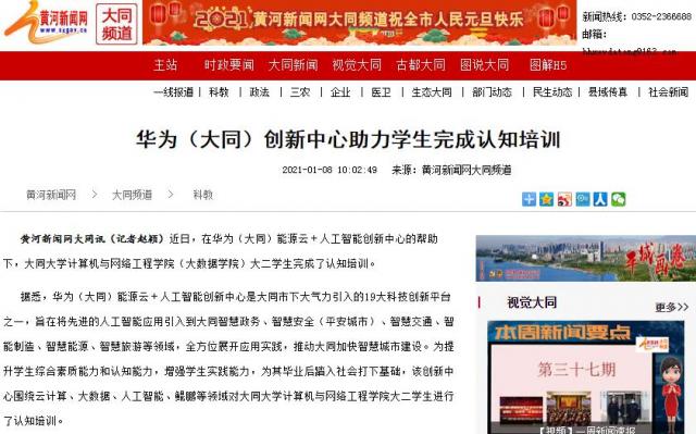黄河新闻网大同讯(记者赵颖)近日,在华为(大同)能源云+人工智能创新中心的帮助下,大同大学计算机与网络工程学院(大数据学院)大二学生完成了认知培训。