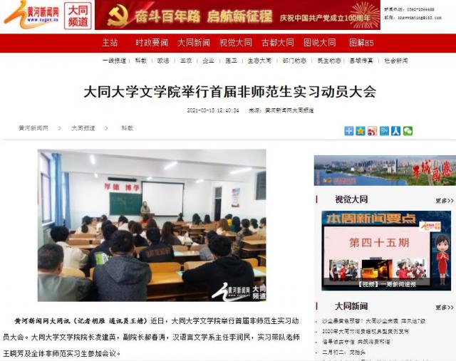 黄河新闻网大同讯(记者胡雁通讯员王婧)近日,大同大学文学院举行首届非师范生实习动员大会。大同大学文学院院长凌建英,副院长郝春涛,汉语言文学系主任李润民,实习带队老师王晓芳及全体非师范实习生参加会议。