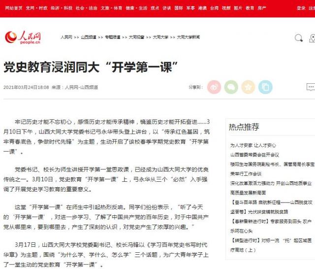 党委书记、校长为师生讲授开学第一堂思政课,已经成为山西大同大学的优良传统之一。3月10日,党史教育“开学第一课”上,弓永华从三个“必然”入手强调了开展党史学习教育的重要意义。