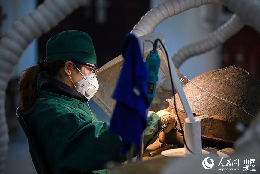 专业人员在可移动文物保护修复室工作。 人民网记者翁奇羽摄