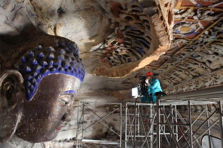 云冈石窟第9窟数字化采集现场。云冈研究院供图