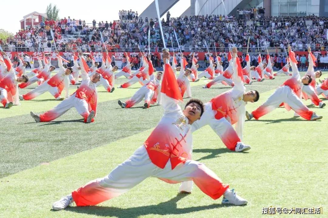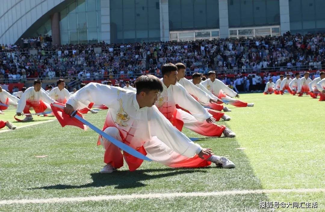 身着传统健身服装的千名师生,伴随着灵动舒缓的音乐,举手,投足,动作严谨沉稳舒展如行云流水。