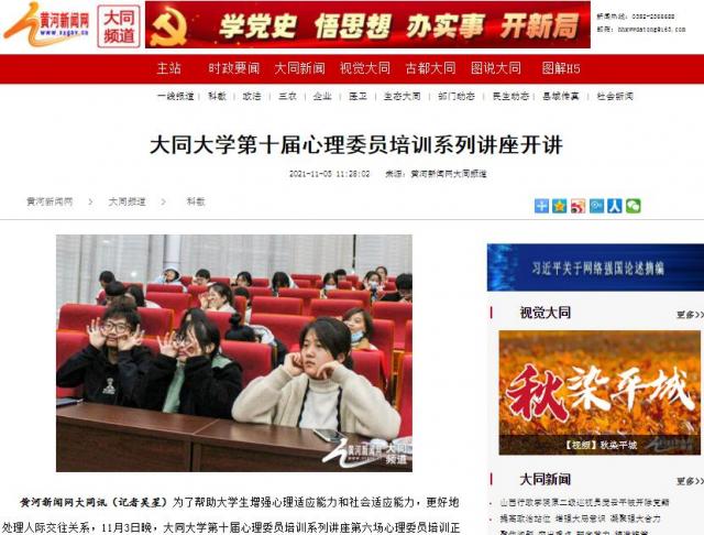 黄河新闻网大同讯(记者吴星)为了帮助大学生增强心理适应能力和社会适应能力,更好地处理人际交往关系,11月3日晚,大同大学第十届心理委员培训系列讲座第六场心理委员培训正式开讲,此次培训的主题为“互助合作多理解:人际交往你我他”,主讲人是国家二级心理咨询师郭彩琴副教授。