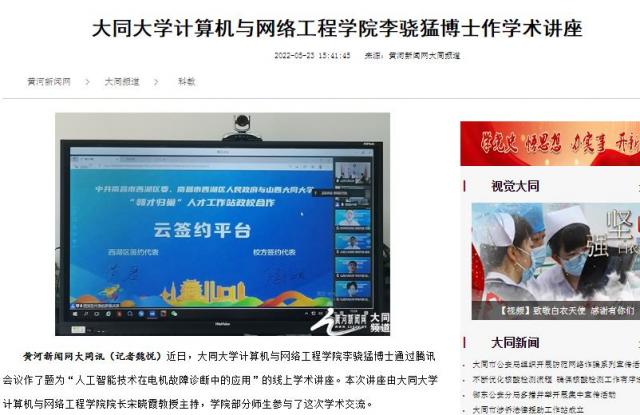 黄河新闻网大同讯(记者魏悦)近日,大同大学计算机与网络工程学院李骁猛博士通过腾讯会议作了题为“人工智能技术在电机故障诊断中的应用”的线上学术讲座。本次讲座由大同大学计算机与网络工程学院院长宋晓霞教授主持,学院部分师生参与了这次学术交流。