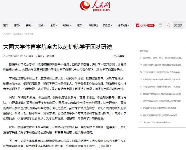 摸底考研学校及专业,精准摸排校内外考生信息,动态更新数据,进行学生需求调研,开展冲刺动员大会……大同大学体育学院用心用情为学子们提供全方位贴心服务,助力学子们圆梦研途。