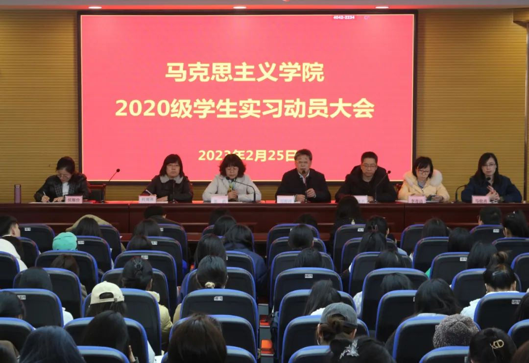 为进一步指导马克思主义学院2020级学生实习工作,调动学生实习工作的积极性,进一步培养学生的政治意识、安全意识,提高学生的学习工作能力、综合素质。2月25日,学院召开“马克思主义学院2020级实习动员大会”。马克思主义学院领导班子、实习带队教师及2020级全体学生参加会议。会议由学院副院长杜海燕主持。