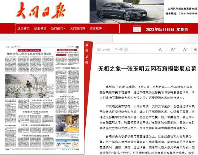 本次展览由市政府、云冈研究院、大同大学主办。旨在通过作品展示与学术讲座相结合的方式,让人们了解摄影艺术、认识云冈石窟,并通过光影美学的欣赏与品鉴,感受艺术之美、提升审美能力。展出作品出自张玉明之手,张玉明现任教于北京电影学院动画学院,是北京电影学院当代艺术研究院研究员、大同大学新闻与传媒学院特聘教授。