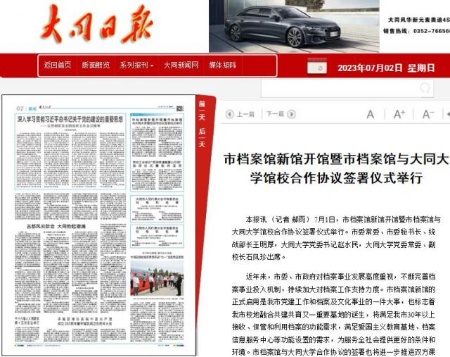 媒体来源:大同日报 2023-07-02