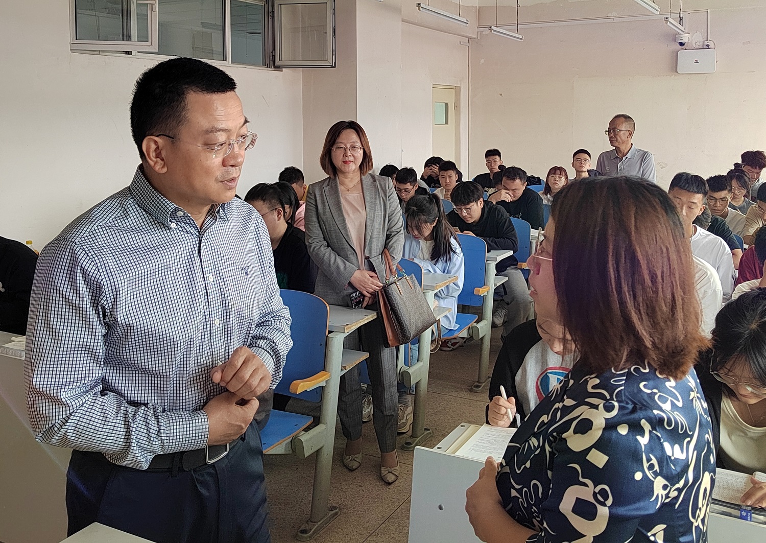 上午8点,赵水民来到博雅楼,分别与2021级设施农业科学与工程一班、2021级运动康复一班的同学们共同聆听了韩志平老师主讲的《农业设施设计与建造》课程、王海老师主讲的《运动康复治疗技术》课程。课后,赵水民与任课教师进行交流,对课堂效果给予肯定,并询问了解他们的教学、科研工作情况。他指出,教学的主阵地在课堂,提高课堂教学质量的关键在教师,要不断更新教育理念,精心设计课程计划,着力改进课堂教学方式方法,充分调动学生参与课堂教学的积极性,在教与学的互动中实现教学目的。在狠抓课堂教学的同时,要结合省情、市情、校情和学生实际加强实践教学,让学生们走进田间地头、厂矿企业、街头巷尾,在广阔的天地中进行丰富的实践学习,持续擦亮学校人才培养的应用型底色。