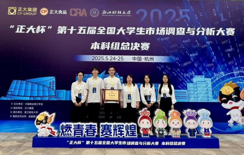 5月26日,第十五届“正大杯”全国大学生市场调查与分析大赛全国总决赛在浙江财经大学落下帷幕。我校数学与统计学院5支本科生队伍、1支研究生队伍参加本次大赛。其中,本科生队伍获得国家级二等奖1项、国家级三等奖1项、省级二等奖1项、省级三等奖2项;研究生队伍获得省级三等奖。本科组获得的国家级二等奖是我校自2016年参赛以来取得的最佳成绩。