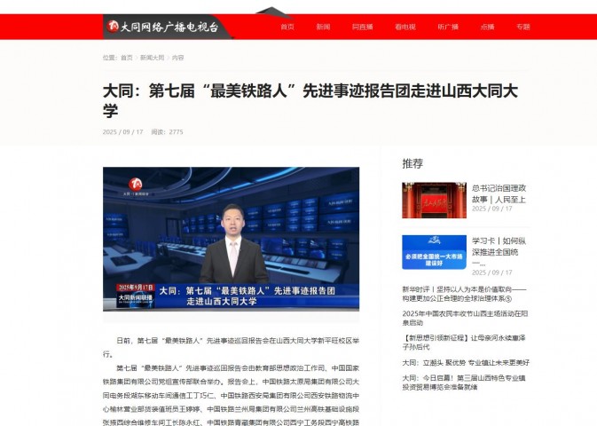 日前,第七届“最美铁路人”先进事迹巡回报告会在山西大同大学新平旺校区举行。