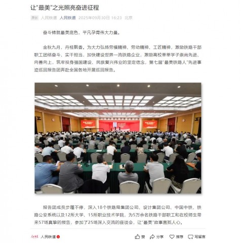 当巡回报告的大幕缓缓落下,“最美铁路人”的故事却从未停止。在轰鸣的机车里,在繁忙的站台上,在寂静的隧道中,在朝气蓬勃的校园里……更多的人正向“最美铁路人”看齐,在属于自己的“赛道”上,为交通强国的画卷持续书写“最美”篇章。