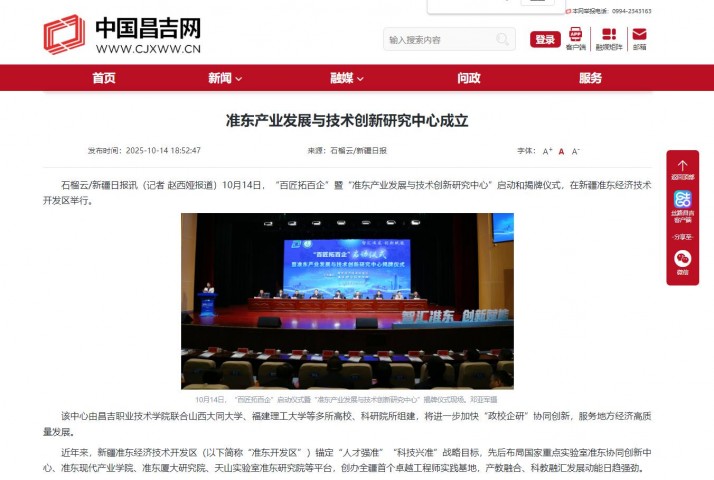 该中心由昌吉职业技术学院联合山西大同大学、福建理工大学等多所高校、科研院所组建,将进一步加快“政校企研”协同创新,服务地方经济高质量发展。