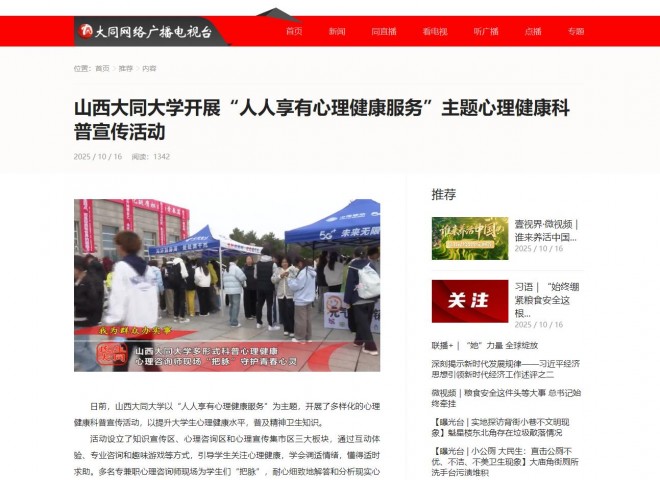 日前,山西大同大学以“人人享有心理健康服务”为主题,开展了多样化的心理健康科普宣传活动,以提升大学生心理健康水平,普及精神卫生知识。