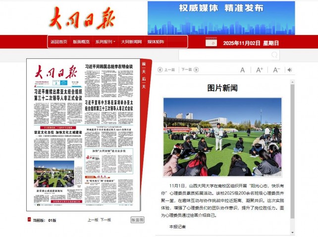 11月1日,山西大同大学在南校区组织开展“阳光心态,快乐有你”心理委员素质拓展活动。该校2025级200余名班级心理委员齐聚一堂,在趣味互动与协作挑战中拉近距离、凝聚共识。这次实践体验,增强了心理委员们的团队协作意识,提升了岗位胜任力。图为心理委员通过绘画介绍自己。