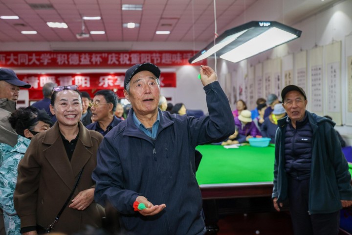 活动现场精心设置了投乒乓球、飞镖、套圈等多个兼具趣味性与参与性的互动项目,吸引了众多老同志踊跃参与,整场活动洋溢着温馨热闹的氛围。