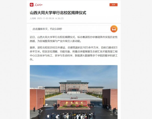 下一步,该校将紧密对接山西省、大同市能源转型与数字经济发展需求,充分释放北校区平台优势,优化办学资源配置,聚焦传统产业升级与新兴产业培育,全力将学校打造成为区域“人才摇篮”与“创新引擎”,为山西全方位高质量发展贡献同大力量。(赵鑫)