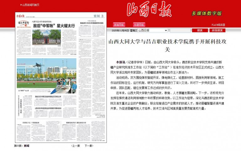 近年来,山西大同大学致力推动科技、教育、人才援疆发展战略。下一步,该校将充分发挥在煤炭清洁利用领域数十年积累的科研优势,以工作站为纽带,深化与昌吉职业技术学院及准东重点企业的产教融合,联合培育适应产业需求的技能人才,推动晋疆智慧资源共建共享,为促进晋疆两地人才培养、技术交流与区域高质量发展贡献高校力量。