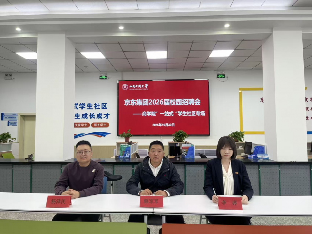 按照学校“一核、多点、星罗棋布”的建设思路,强化“一站式”学生社区就业育人阵地的功能,10月30日,商学院在学校“一站式”学生社区举办京东集团2026届秋季专场招聘会。京东集团股份有限公司片区运营经理韩军军、人力资源业务合作伙伴杨泽民和商学院相关负责老师参加活动。