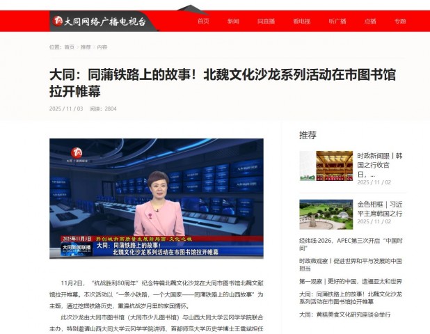 11月2日,“抗战胜利80周年”纪念特辑北魏文化沙龙在大同市图书馆北魏文献馆拉开帷幕。本次活动以“一条小铁路,一个大国家——同蒲铁路上的山西故事”为主题,通过挖掘铁路历史,重温抗战岁月里的家国情怀。