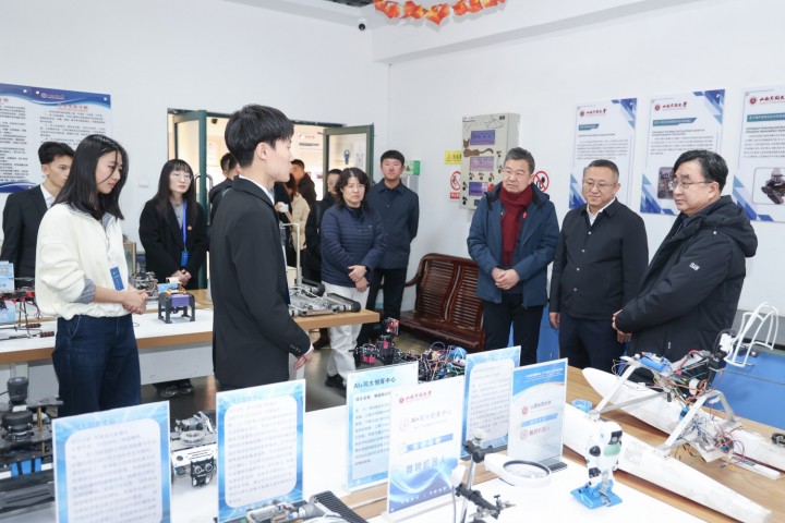 赵水民一行先后来到校园公共区域、教学实验与实训中心、AI+同大创客中心等,实地查看氛围营造、环境卫生、设施运行及教学准备情况,详细了解迎评准备情况。