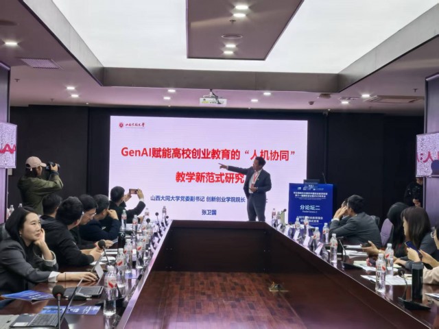 校党委副书记、创新创业学院院长张卫国教授出席,创新创业教研室负责人参加会议。作为联盟理事,张卫国教授应邀作题为《GenAI赋能高校创业教育的“人机协同”教学新范式研究》的主旨报告。