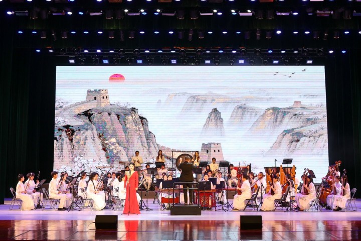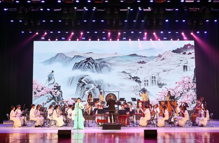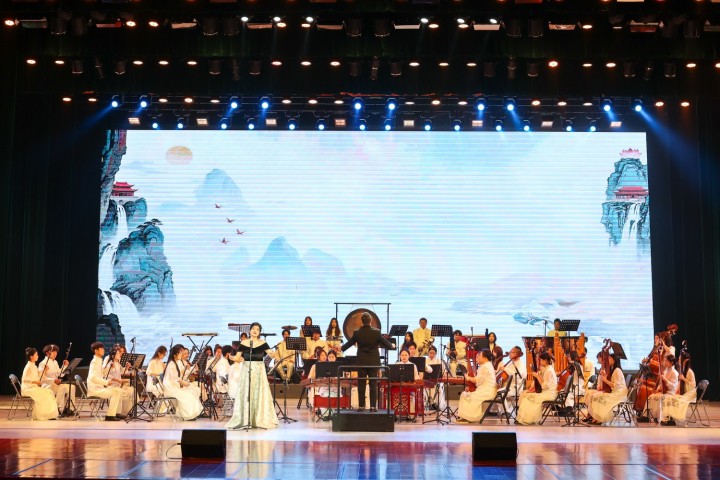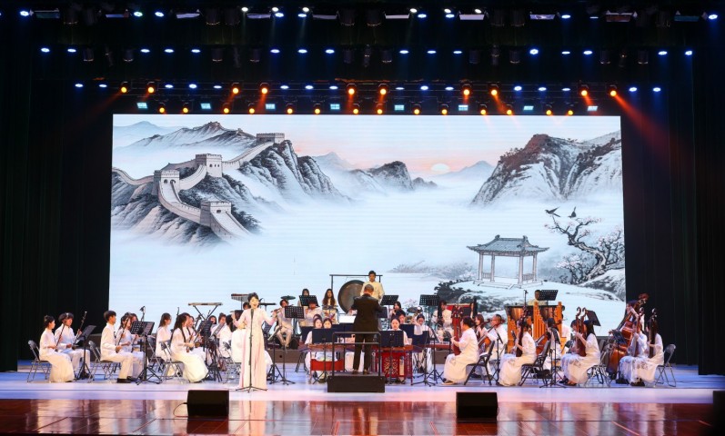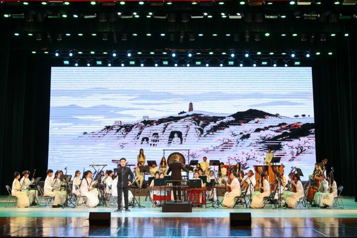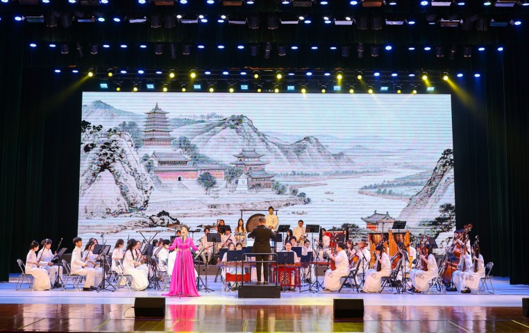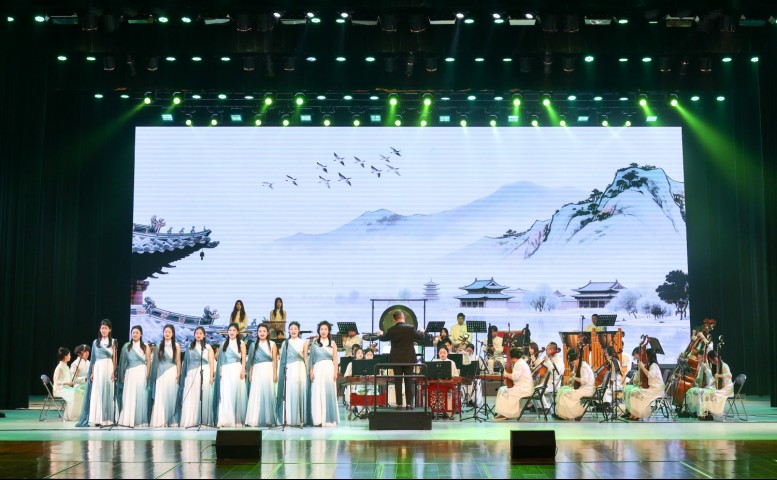 这场集歌曲、乐舞、器乐演奏于一体的文化盛宴,以铸牢中华民族共同体意识为主线,将千百年的云冈石窟历史文化与艺术底蕴搬上舞台,是我校深化“三全育人”综合改革、推动云冈学多学科交叉融合教学实践、聚力云冈学人才培养与文化传承的全面展示。本次展演的上半场,是山西省首届艺术基金资助项目“云冈石窟诗词民族管弦乐”的部分教研成果,下半场是教育部全国高校思政原创文化精品项目“云冈之舞”的部分教研成果,以“诗-歌-乐-舞合一”的艺术形式,重新演绎沉寂在千百年石刻造像中的古人吟唱,共同感受震撼人心的云冈力量。