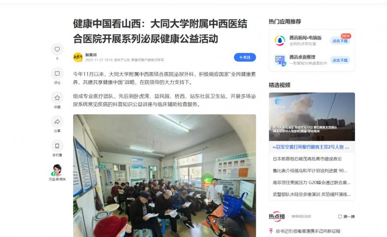 今年11月以来,大同大学附属中西医结合医院泌尿外科,积极响应国家“全民健康素养,共建共享健康中国”战略,在院领导的大力支持下。