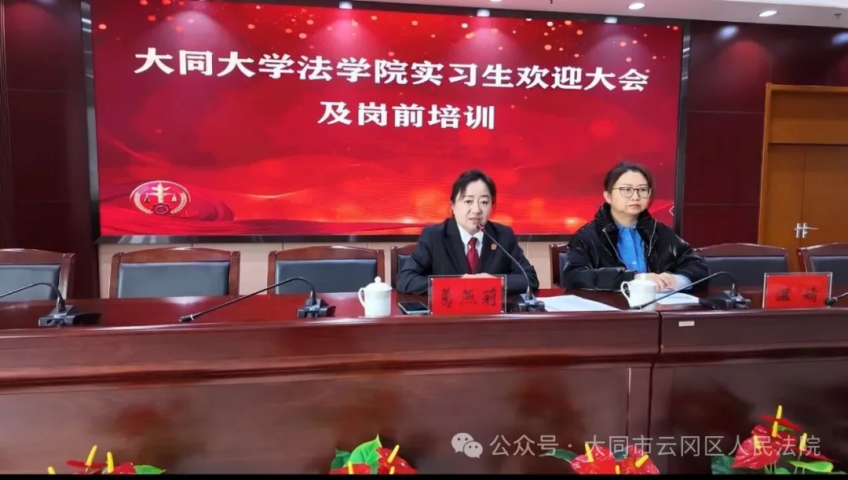 为深化法学教育与司法实践融合,为司法事业注入青春动能,11月24日,云冈区人民法院精心组织大同大学法学院实习生欢迎会暨岗前培训活动,山西大同大学法学院实践教学教研室教师温婧、云冈法院党组成员、政治部主任葛燕莉、机关党委委员姚竟楠、尹鹏玲和全体实习生参加会议,开启实习生“理论联系实际”的司法实践之旅。