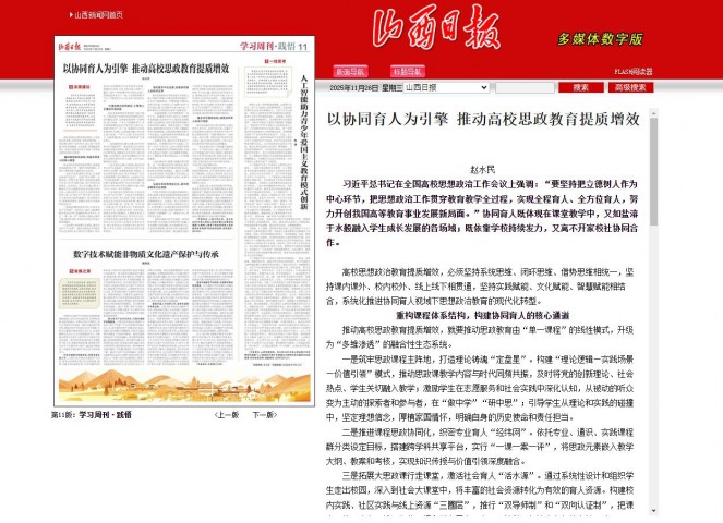 (作者单位:山西大同大学。本文系2025年度山西省人民政府重大决策咨询课题“立德树人背景下高校协同育人思政教育体系构建”的阶段性成果;项目编号:ZB1505)