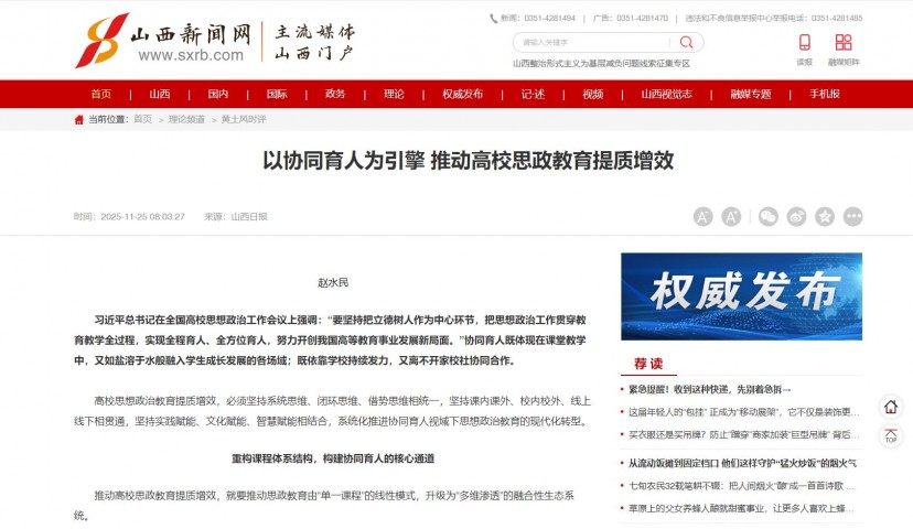 (作者单位:山西大同大学。本文系2025年度山西省人民政府重大决策咨询课题“立德树人背景下高校协同育人思政教育体系构建”的阶段性成果;项目编号:ZB1505)