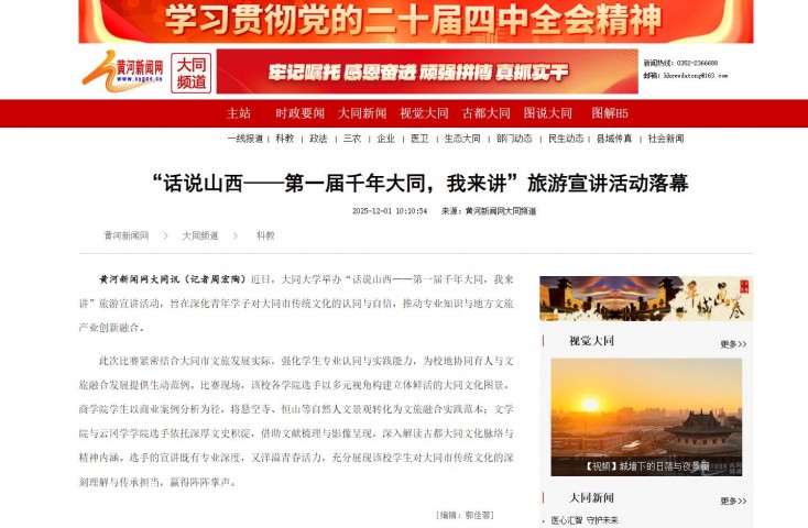 黄河新闻网大同讯(记者 周宏陶)近日,大同大学举办“话说山西——第一届千年大同,我来讲”旅游宣讲活动,旨在深化青年学子对大同市传统文化的认同与自信,推动专业知识与地方文旅产业创新融合。