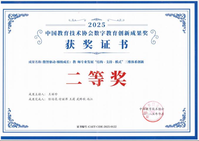 在开幕式的重要单元——2025年数字教育创新成果发布颁奖会上,我校《数智驱动·梯级成长:教师专业发展“结构—支持—模式”三维体系创新》案例,从全国数百所高校中脱颖而出,荣获教育治理赛道二等奖。
