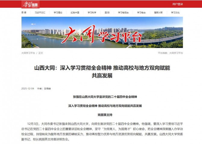 来源:学习强国大同学习平台 2025-12-04 责编:余致楠