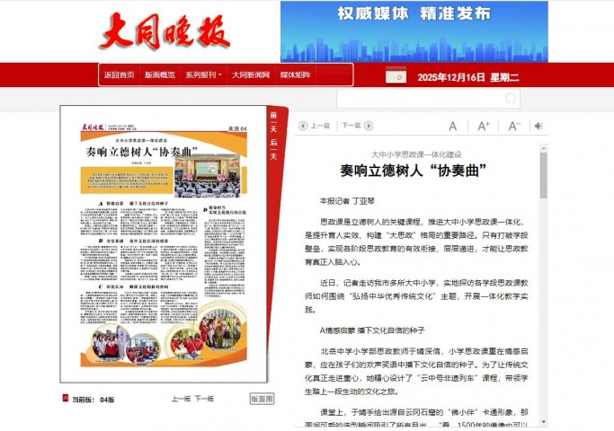 思政课是立德树人的关键课程,推进大中小学思政课一体化,是提升育人实效、构建“大思政”格局的重要路径。只有打破学段壁垒,实现各阶段思政教育的有效衔接、层层递进,才能让思政教育真正入脑入心。