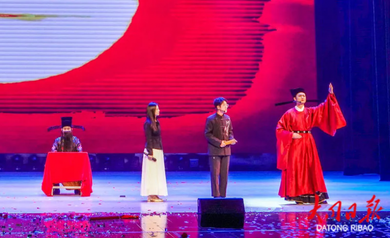 随后,武术《武韵新春》刚劲有力,展现中华传统体育精气神;歌曲《像你这样的朋友》温暖真挚,传递同窗情谊与青春力量;朗诵《诗词里的中国》以声传情、以诗言志,带领观众在经典中感受家国情怀;舞蹈《云冈长袖飞天舞》融合地域文化元素,衣袂翻飞间尽现古典之美;二人台戏曲《三十里明沙二十里水》韵味悠长,展现独特艺术魅力;T台秀《云裳衣梦,秀揽星河》创意十足,将时尚表达与校园风采巧妙融合;舞蹈《苏幕遮》柔美典雅,营造诗意意境。