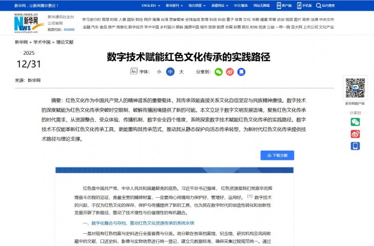 2025年12月31日,新华网刊发学院教师刘志财署名文章《数字技术赋能红色文化传承的实践路径》,全文如下: