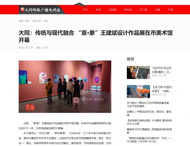 本次展览由山西大同大学美术学院、市美术家协会联合主办,既是王建斌学术与设计水平的集中展示,也是学校深化党建与业务融合的实践,彰显主办单位传承优秀传统文化、服务地方文化建设的责任。展览将持续至1月31日。