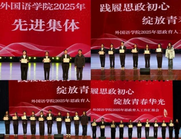 此次汇报会是学院深化“课程思政+活动思政+舞台思政”融合育人的生动实践,更是学院探索“外语+思政”特色育人路径的集中展示。近年来,学院立足外语专业优势,不断创新思政育人载体,通过多语种理论宣讲、红色外文剧目、实践志愿服务等多元形式,推动思政教育与专业教育深度融合。学院将持续深耕特色思政育人之路,把思政教育贯穿人才培养全过程,着力培养更多心系家国、兼具专业素养与国际视野的时代新人。(来源:外国语学院 责编:安嘉平)